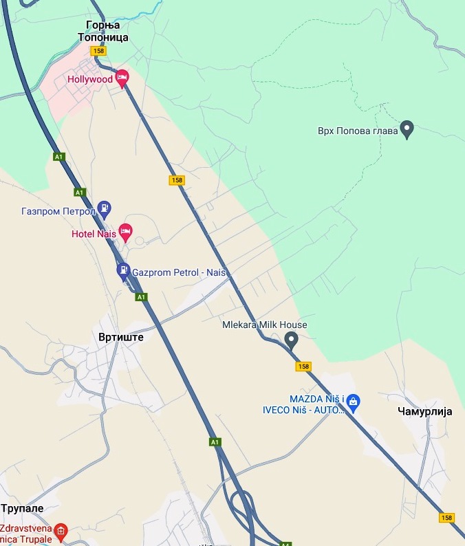 Вода на површини, потребан је ископ код скретања за село Трупале. Због поправке водоводне мреже биће у прекиду водоснабдевање до 15 часова на простору села Чамурлија, Трупале, Вртиште до Горње Топонице, као и у Горњој Топоници. Специјална болница имаће редовно снабдевање водом.