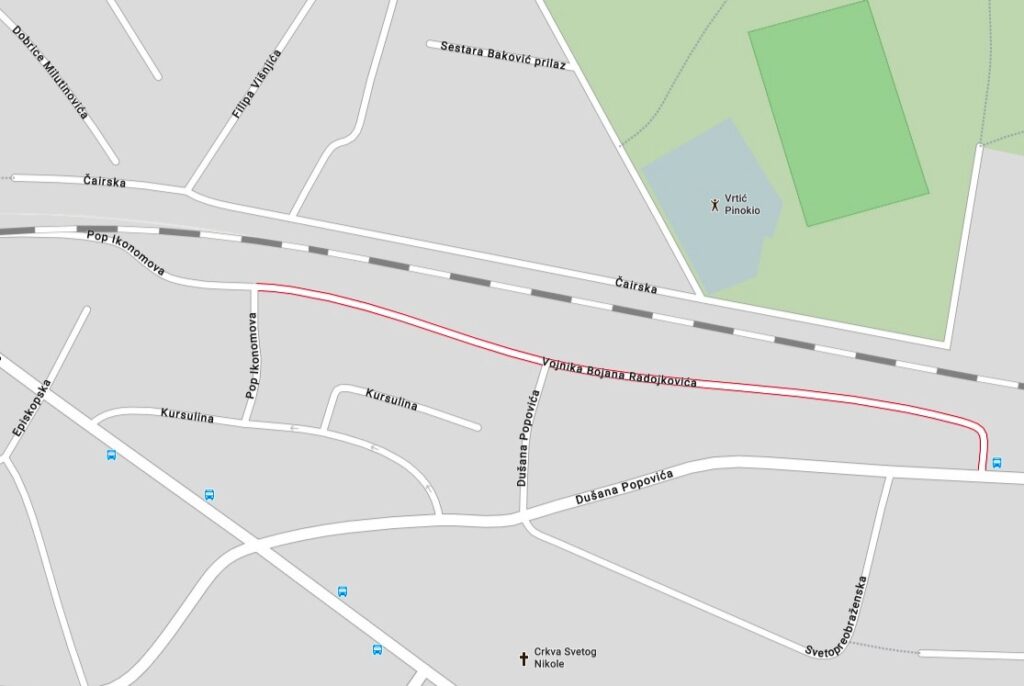 Услед хаварије нужан је ископ у улици Војника Бојана Радојковића, код броја 43. Због поправке водоводне мреже биће у прекиду водоснабдевање до 15 часова у улицама Војника Бојана Радојковића и Поп Икономовој.