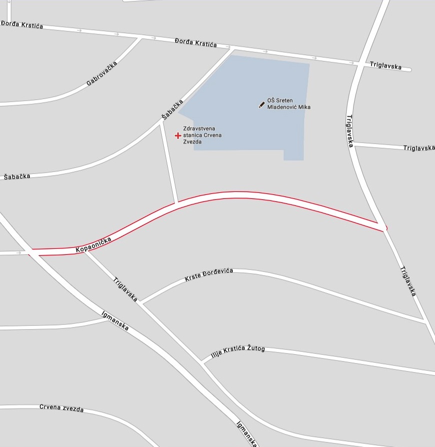 Вода на површини, потребан је ископ у Копаоничкој улици, код броја 5. Због поправке водоводне мреже биће у прекиду водоснабдевање до 16 часова у Копаоничкој улици, али је могућ прекид и у околним улицама: Триглавска, Крсте Ђорђевића, Илије Крстића Жутог.